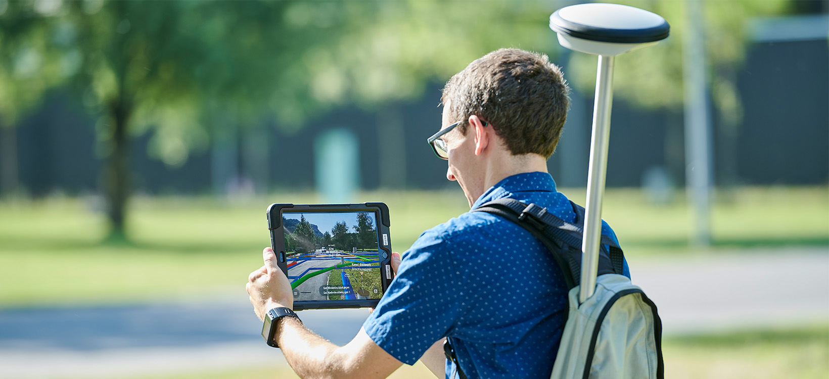 “We opted for the Leica GG04 plus antenna, as it is relatively low-priced, small, handy and can be coupled with mobile devices. The last of these points is crucial since the AR software runs on an Android or iOS tablet or smartphone,” explains Drexel. “The combination of vGIS and GG04 plus is recommended due to the simple setup, the connection to the mobile device, reliability and the high accuracy of the products compared to the competition.”