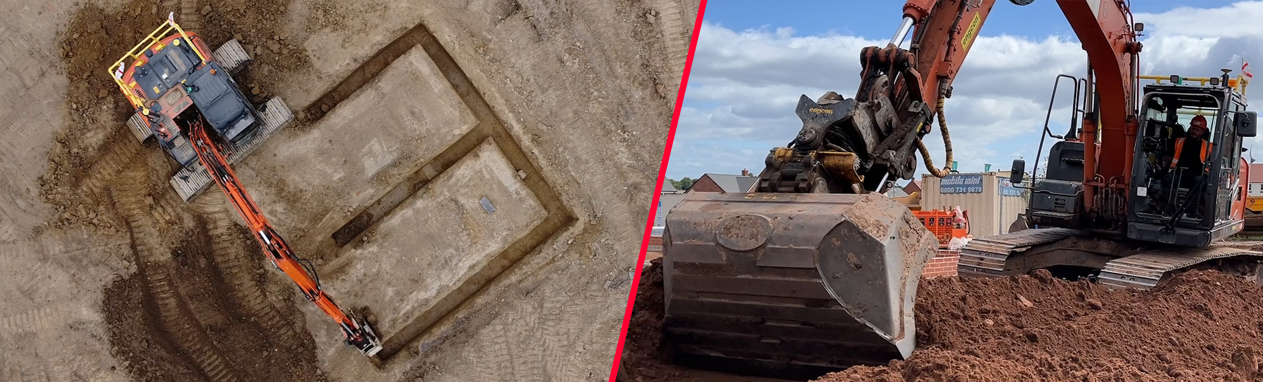 Equipped with the 3D machine control solution and a tilt rotator, he is empowered to grade the uneven ground and dig the foundations without leaving his machine or worrying about people in the vicinity.
