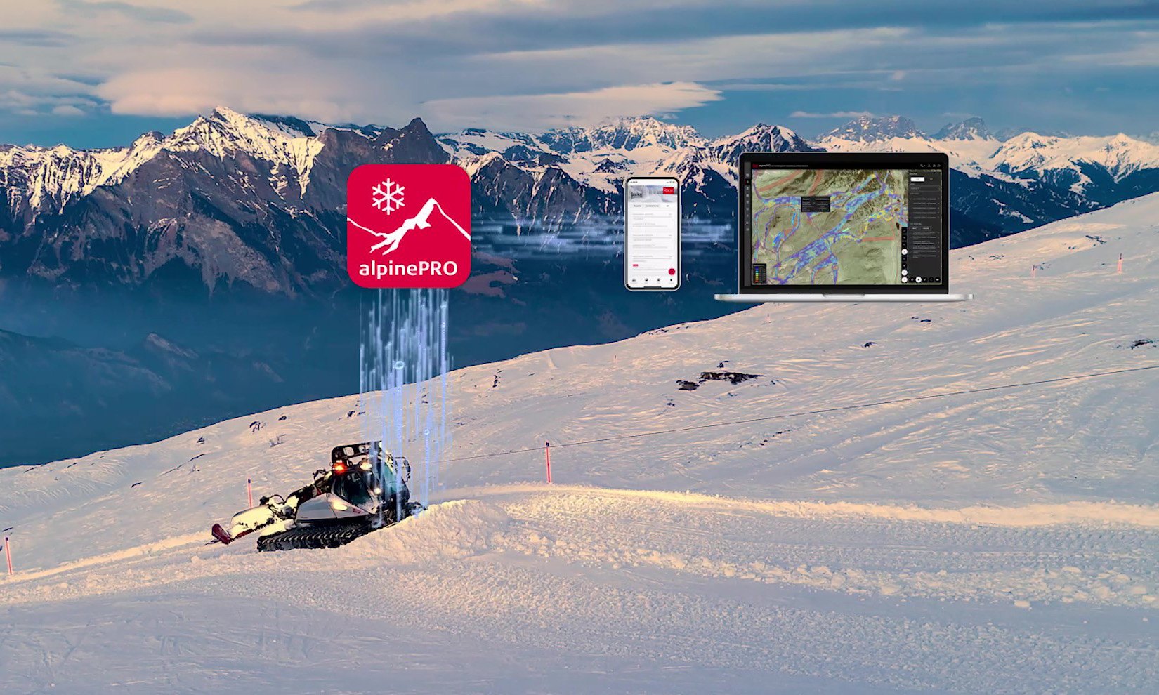 Thanks to the partnership, not only is the machine delivered as a complete package, but the software solutions are also fully compatible with PRINOTH’s technology, including the Skadi app. “The Skadi app works seamlessly with Leica alpinePro, combining precise snow height and depth data with detailed machine maintenance and operational insights—giving ski resort operators a comprehensive, real-time overview of everything from snow management to equipment upkeep,” says Yves.