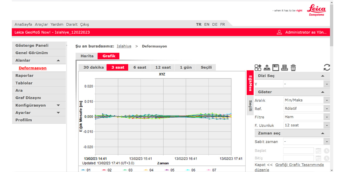 Using the Leica GeoMoS monitoring solution, Sistem conducted remote monitoring from a safe distance, eliminating the need for physical contact with the compromised buildings and structures. Real-time information allowed rescue leaders to briefly pause operations to monitor movements and assess whether it was safe to proceed once stability was confirmed.