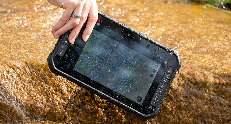 The durable CSX8 withstands drops up to 1.5m on marble (IEC 60068-2-31), waterproof spray (IPx6), water submersion (IPx8) and dust (IP6x). The ergonomic design makes it easy to grip, with clear graphics even in bright light. A tough tablet for tough conditions.
