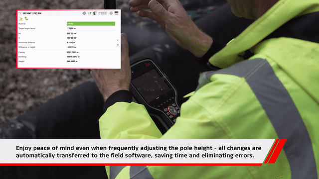 The TS13 comes with the innovative AutoHeight, a feature that helps you get your instrument height with a simple button press. It reduces human error, you can forget about using a tape and always trust the instrument height you measured. Focus on your work and be done with the setup of your total station in the blink of an eye.