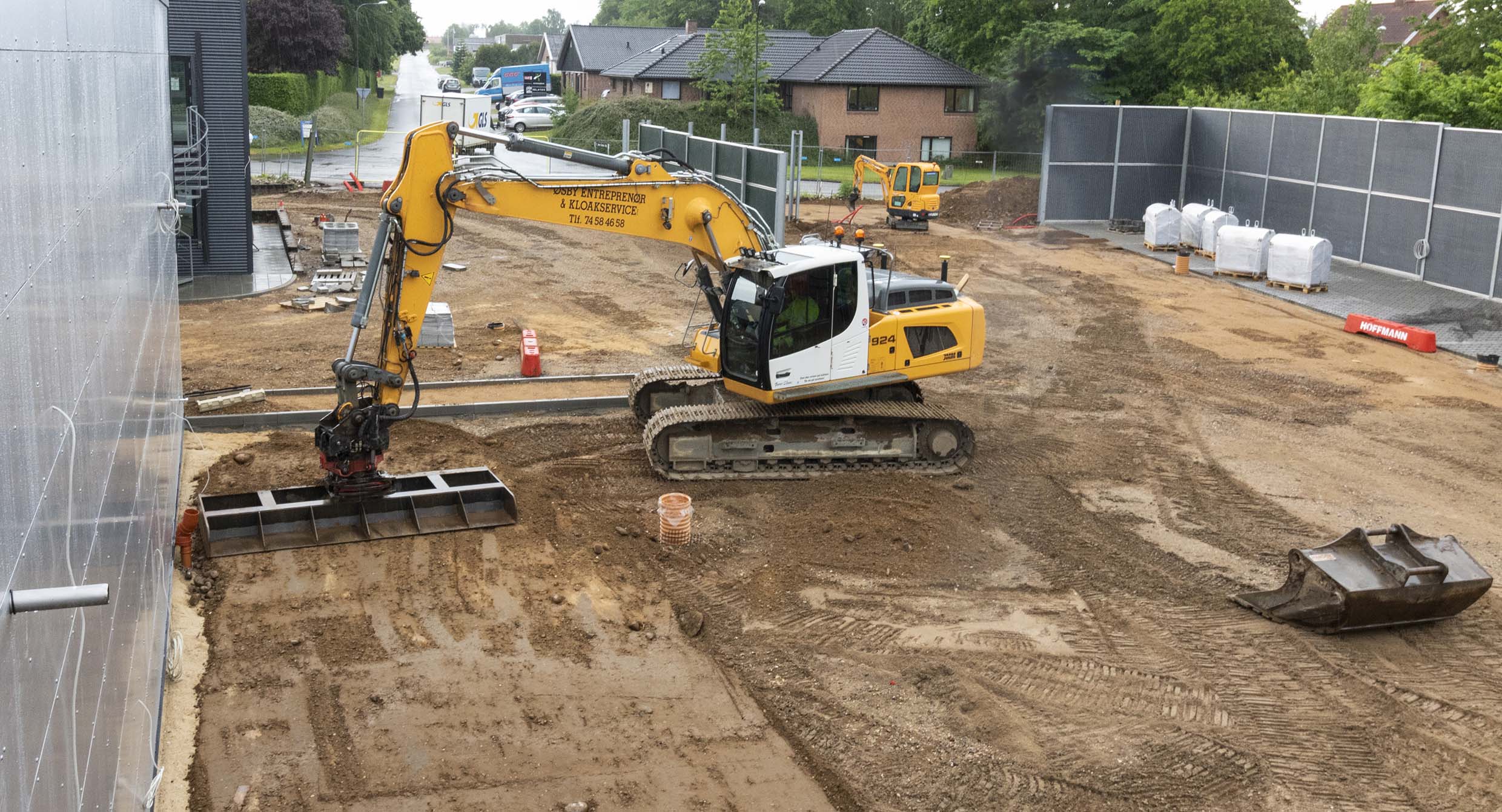 "Projektet er større end dem, vi normalt arbejder på", siger Claus. "Det er et ægte "Leica-projekt", hvor maskinstyringsløsningen virkeligt skal stå sin prøve, fordi vi finplanerer asfalt- og fliselægning, udgraver til brønde, kældre osv., og alt sammen skal dokumenteres digitalt."