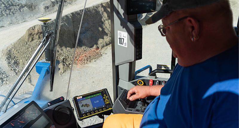 Die Anzeige von Ab- und Auftrag auf dem Display in der Fahrerkabine stellt einen einfachen und produktiven Betrieb sicher. Das bestätigt auch der Maschinenführer des neuen Radladers in Schafisheim, Markus Rüeger, und fügt hinzu: „Alle Informationen sind auf dem Display klar ersichtlich. Das System ist selbsterklärend.“