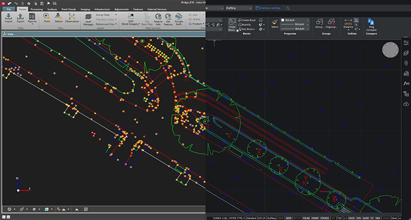 Nutzen Sie Infinity, um Ihren Arbeitsablauf vom Feld bis zum Ergebnis zu optimieren, und arbeiten Sie mit einer Vielzahl von Vermessungs-CAD-Paketen.