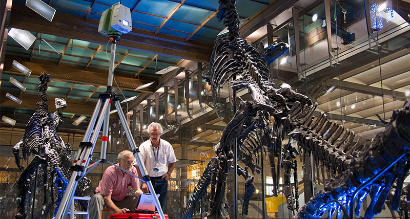 Lucas de Ridder und Hugo de Potter erfassen die Überreste prähistorischer Iguanodons im Museum für Naturwissenschaften in Brüssel mit einer Leica ScanStation C10.