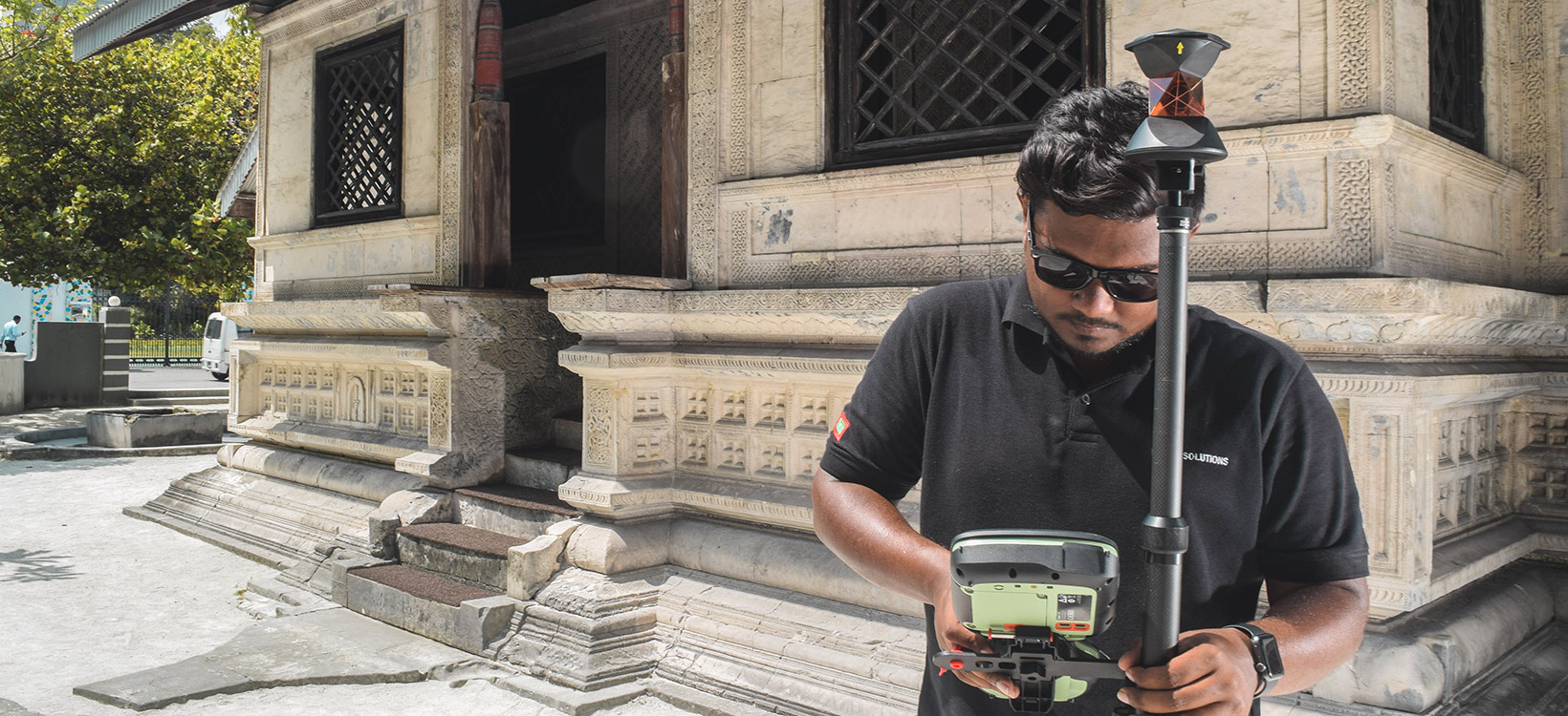 Water Solutions erbringt auf den gesamten Malediven Vermessungs-, Ingenieurs- und Umweltberatungsleistungen und ist immer bestrebt, für seine Tätigkeit neueste Technologien und Systeme anzuwenden. Zur Durchführung der präzisen digitalen Vermessung, welche die Grundlage für die 3D-Dokumentation und Instandsetzung von Hukuru Miskiy darstellen sollte, nutzte Water Solutions einen Laserscanner in Kombination mit einer Totalstation und dem schnellsten GNSS-RTK-Rover der Welt.
