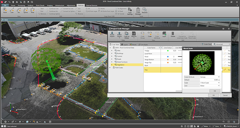 Nutzen Sie Infinity, um Ihren Arbeitsablauf vom Feld bis zum Ergebnis zu optimieren, und arbeiten Sie zum Erstellen Ihrer Ergebnisse mit einer Vielzahl von Vermessungs-CAD-Paketen. Infinity verkürzt Ihren Weg zum endgültigen Ergebnis. Die Software verfügt über Werkzeuge, mit denen Sie Codetabellen für die Verwendung im Projekt vorbereiten können. So können Sie codierten Objekten rasch Stile zuweisen und hochwertige CAD-Ergebnisse exportieren.