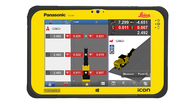 Bedieneinheit Leica MCP80 mit Maschinensteuerung Leica MC1 und iCON pave für Curb & Gutter-Fertiger.
