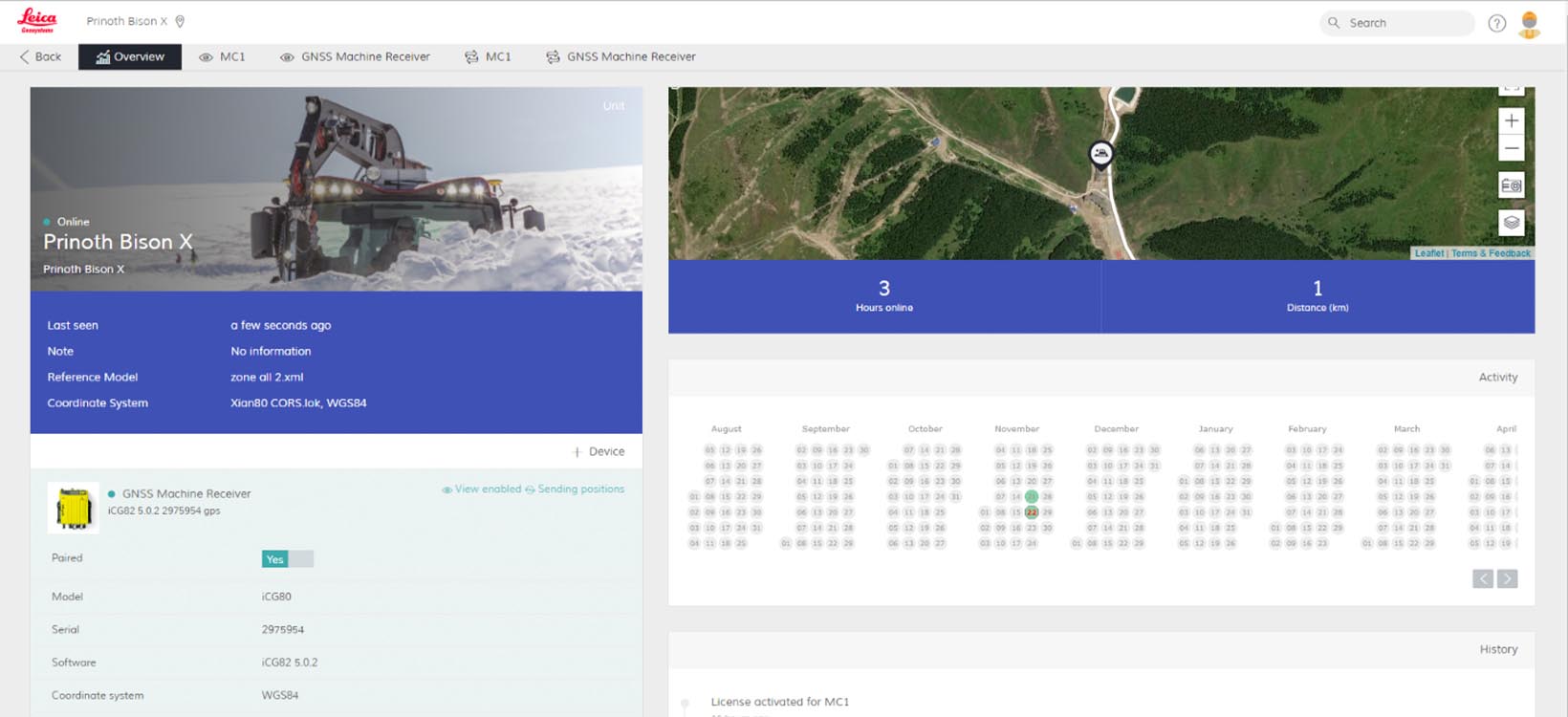 Equipping the snow groomers with machine control for the 2022 Winter Games also required the smooth running of the web-based cloud solution, Leica ConX, working in China. Leica ConX supports the fleet management tool of Prinoth’s snow groomers and allows: