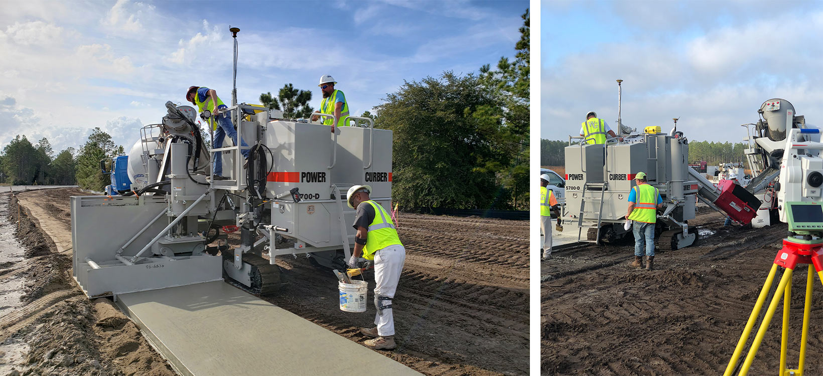 After getting settled in with the machine, Jones expressed that the 5700-D concrete slipform machine with machine control solution from Leica Geosystem has “been good, we love it. The guys in the field love it. It works great.” Grimes observed that their slipform crew “adapted to stringless controls really well, they jumped right in and have embraced it.”
