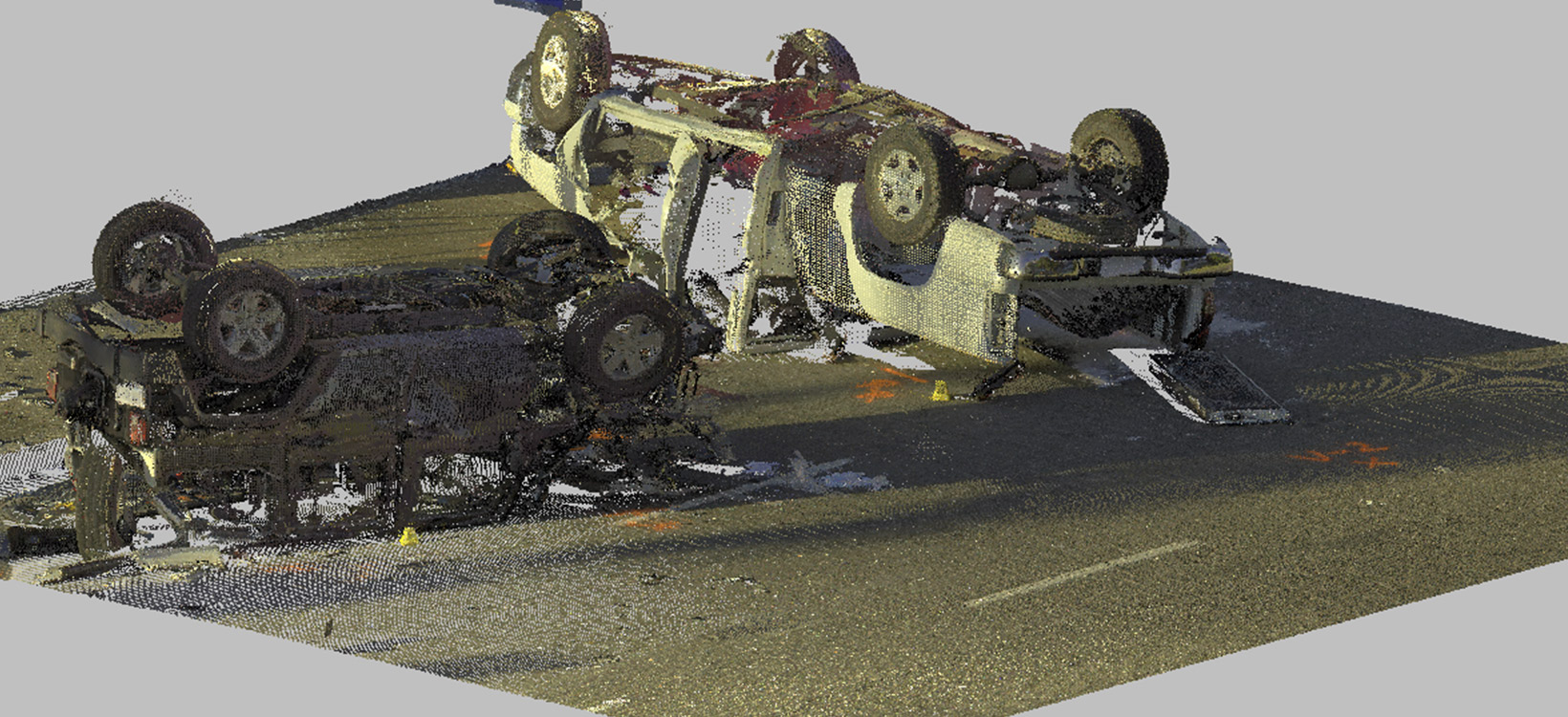 Until recently, Hadley and his fellow investigators had been using a theodolite for their forensic mapping. “A theodolite can make very accurate measurements. The limitation is that it only is taking data points and measurements for items that you choose, and that process can be pretty time consuming,” he says. “We were shutting down major intersections for four, five hours at times to take 200 to 400 data points.” Like many public safety agencies, Santa Ana Police Department held onto the obsolete device because there was no money in the budget to purchase faster technology.