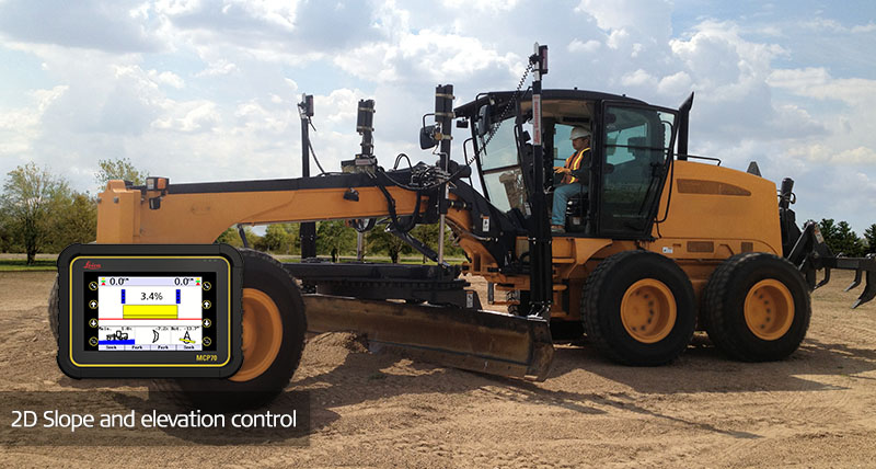 Benefit from a simple 2D solution with new and improved sensors and upgrade easily when the job site requires more automation, documentation and accuracy. Add MCP80 panel, MC1 software, and GNSS antennas or radio and prism to upgrade to a 3D solution without having to change sensors and cables.