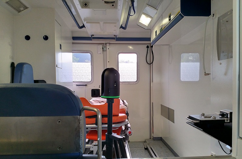 As early as 2019, the Leica BLK360, the smallest 3D imaging laser scanner on the market, and the Leica Pegasus:Backpack, the mobile mapping laser scanning solution, were used to digitise an ambulance. The 3D data model of the ambulance was used to create a simulator being used for training purposes by paramedics (cooperation with the Fraunhofer IGD, among others).