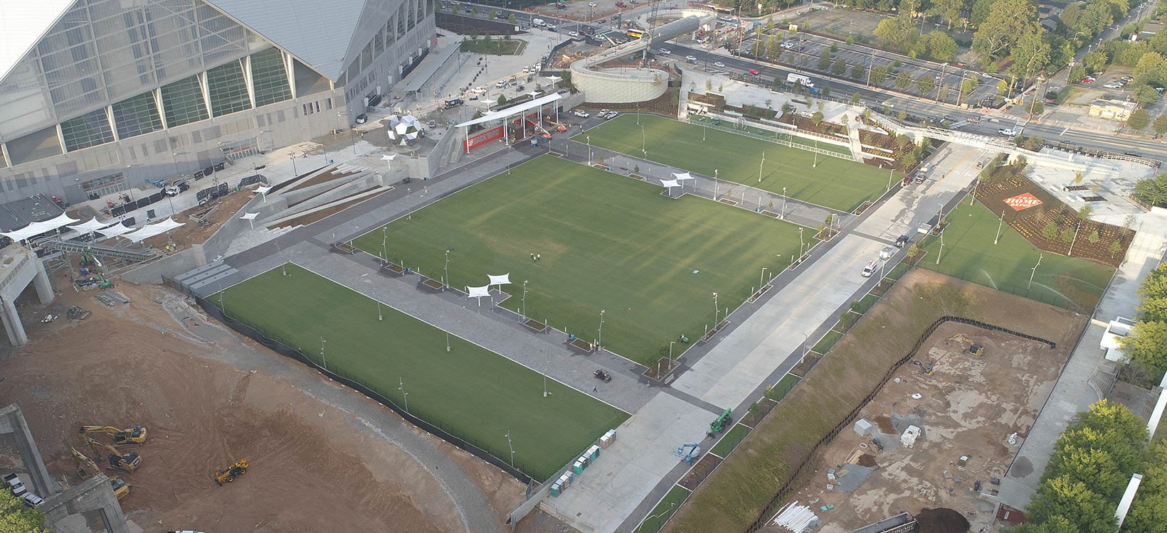After the completion of Mercedes-Benz Stadium in Atlanta, Darden & Company was tasked with managing the implosion of the Georgia Dome — one of the largest covered stadiums ever built — and the subsequent construction of the recreation space that took its place. The firm discovered that Unmanned Aerial Vehicle (UAV) imagery and mapping services were just what was needed to keep the project on schedule and communicate with stakeholders from top to bottom.