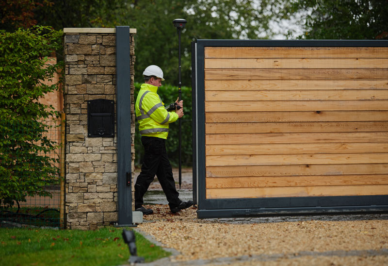 Figure 1 - Leica GS18 I GNSS RTK rover while measuring points over a fence