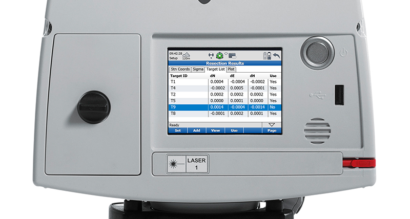 Specifically for Resection methods mentioned earlier, this means that station coordinates with standard deviations and target coordinates with their residuals can be displayed as values and graphical plots immediately in the field. This helps to get geo-refenced scans directly in the field. Registration errors, which are typically found during office post-processing, can be detected and avoided immediately during the scan acquisition process.