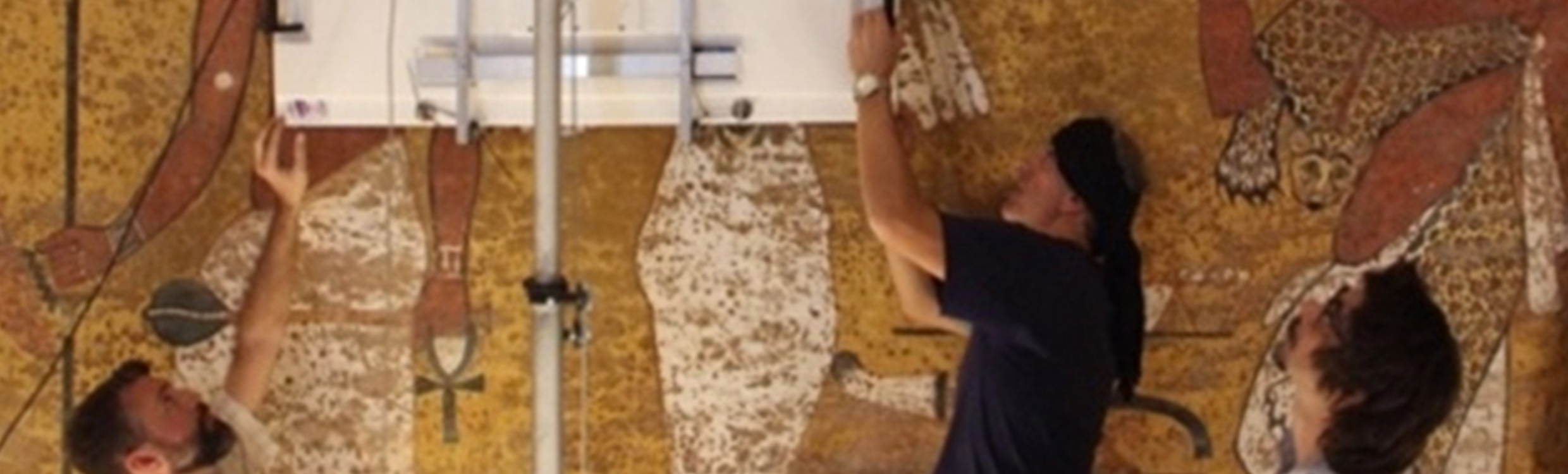 Due to the requirement of scanning the walls without damaging their precious decorations, special equipment was designed and executed by the research team to move the antennae at a certain distance from the walls.