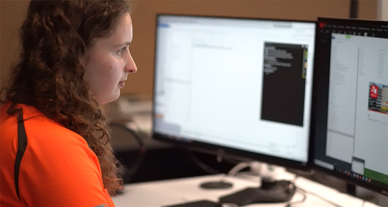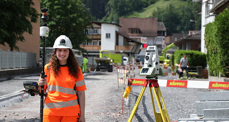 24-year-old Alessia Figaroli, Construction Surveyor at Käppeli Digital, has a unique overview of the Flums pipeline project as the lead data manager and primary contact for the foreman and site manager. Using a range of instruments and software, she creates, prepares and transfers data for stakeout, survey and machine control tasks.