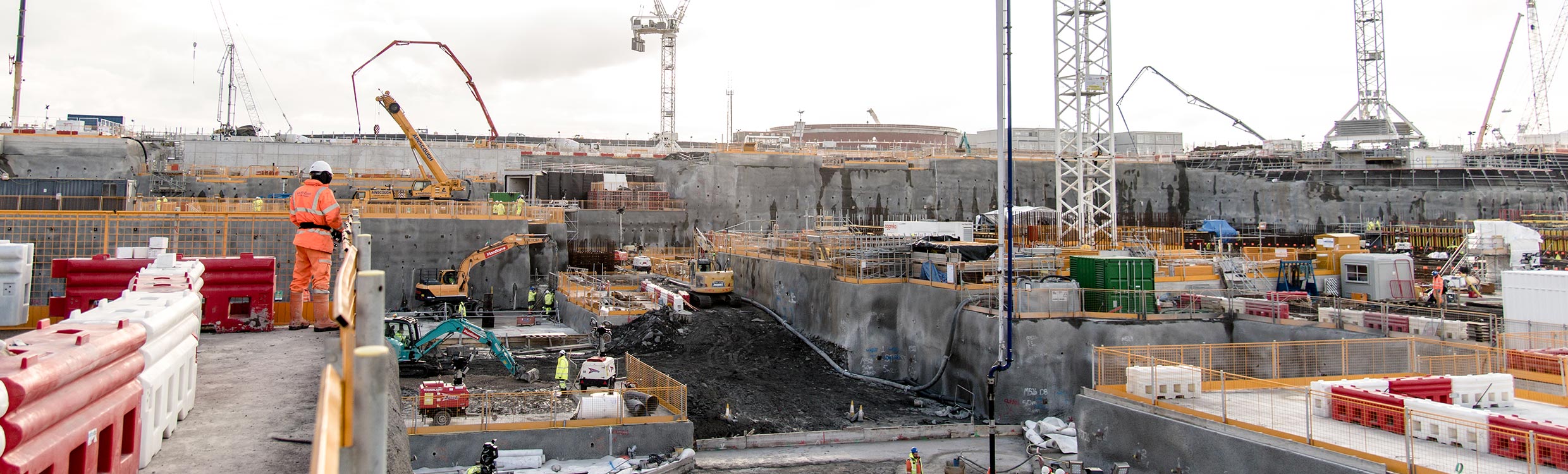 The complex components of deep excavation were made up of more than 100 different construction platforms, numerous galleries, shafts and sumps. Vertical rock faces ranged in height from less than 1 m to 38 m, so boundaries had to be designed to allow for the difference in elevation.