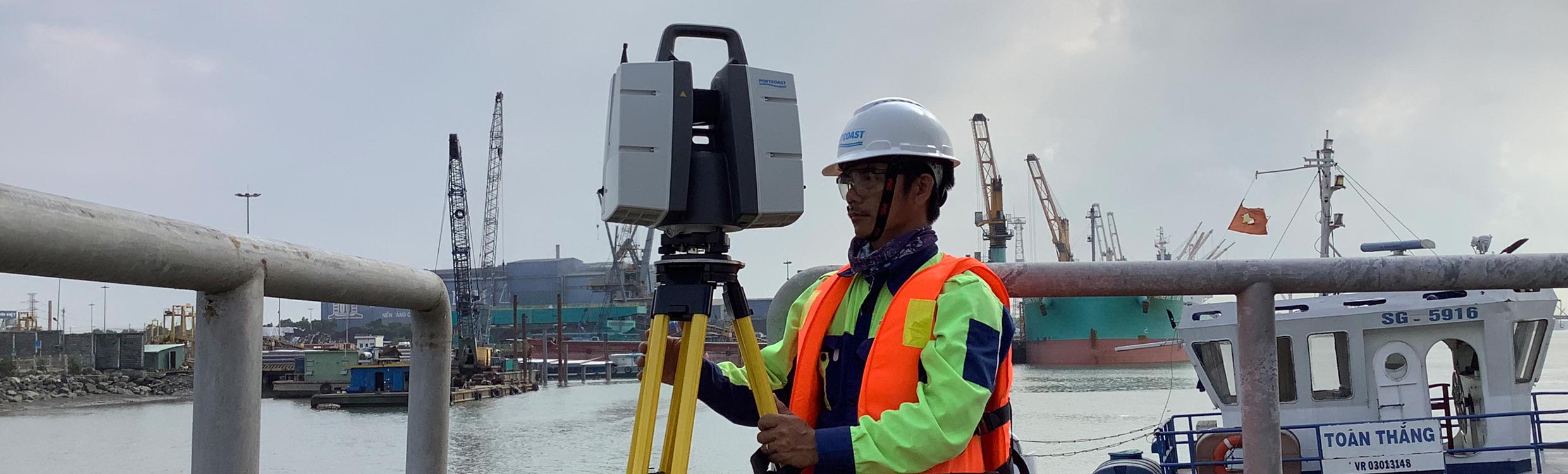 Portcoast is one of the most experienced surveyors of marine, waterway and transport infrastructure sites in the region. With a reputation for accuracy, they have a proven track record in carrying out similar projects in the region, such as the 3D scanning of the nearby Hyosung Vina Chemicals Port, Posco SSVN Port and their work for Hutchison Ports SITV. In this project, surveyors from Portcoast were responsible for inspecting and scanning the whole port as well as providing quality assurance for the final 3D model.