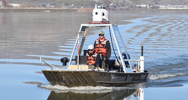 The job fell first to Horrocks Engineers, which has 15 offices throughout the western United States, including three in Idaho. Collecting survey data for the bridge and surrounding roadways was a standard job for their mobile mapping unit, said Lonnie Olson, principal and survey manager at Horrocks, but the project also called for bathymetric data for the river bottom and bridge substructure.