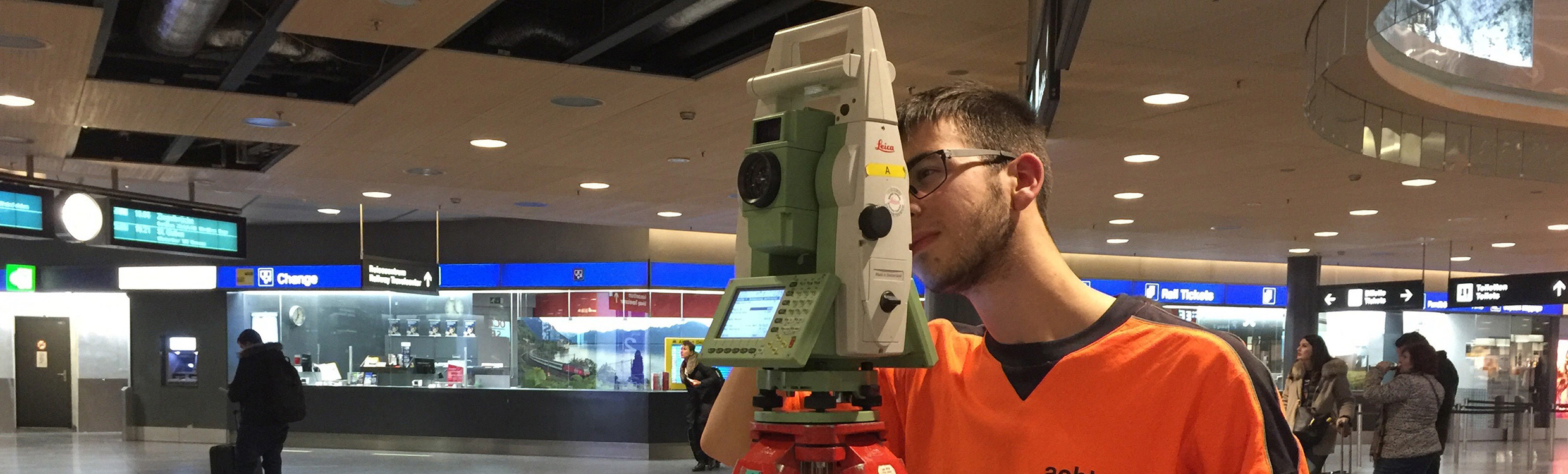 Frischknecht Jürg from Acht Grad Ost surveying Zurich International Airport in Switzerland using a Leica TCRP1201