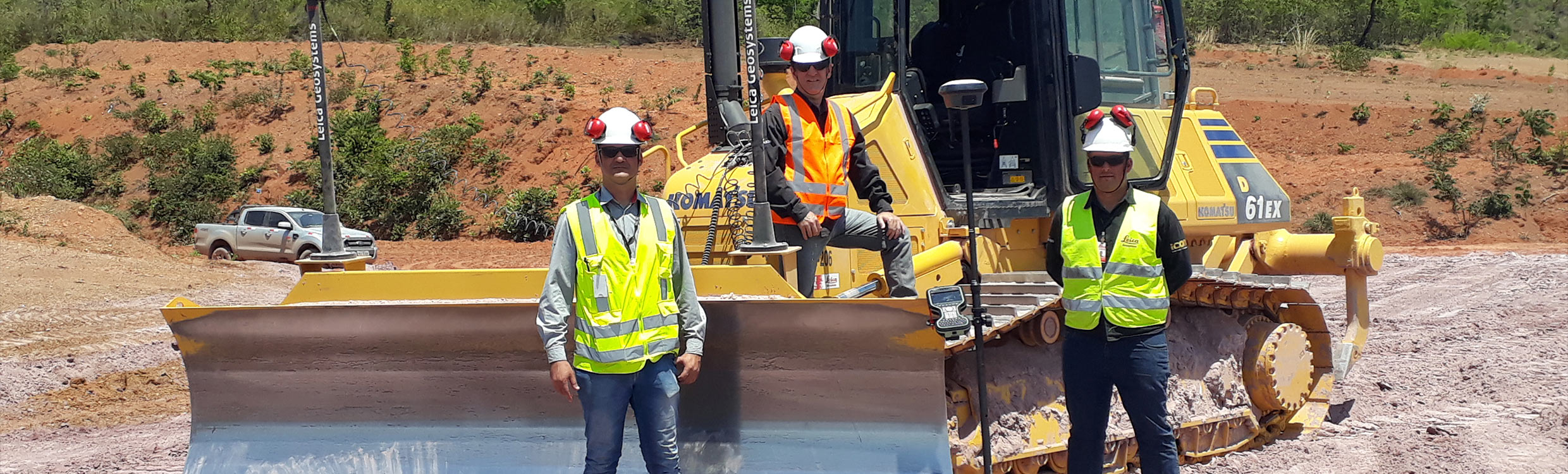 Henrique Werneck, Davi Fluck et Renato Tavares ont installé le système Leica iCON iGD4SP sur un bulldozer pour le compte de Nexa Resources, dans une décharge de résidus secs à Vazante, au Brésil.