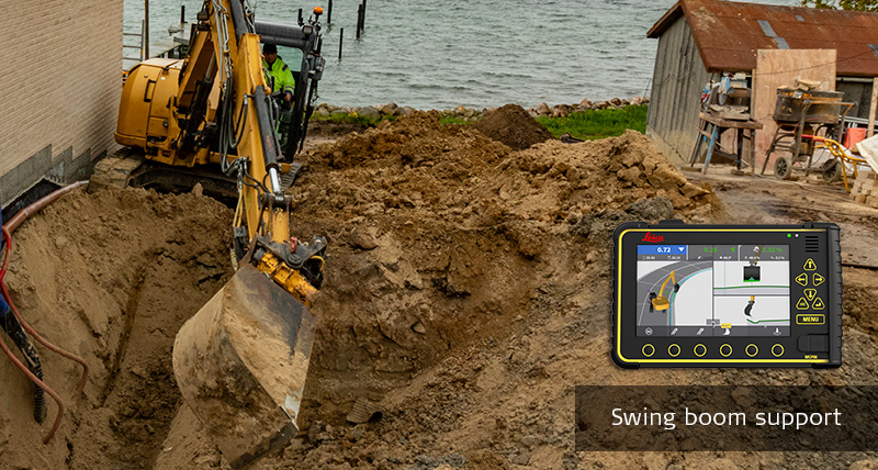 Leica Geosystems propose une plateforme logicielle et matérielle unique pour toutes les applications 3D. Le conducteur peut facilement placer le panneau sans fil sur un autre engin. Vous pouvez à présent étendre l'offre de systèmes de guidage d'engins 3D pour inclure des pelles compactes et des pelles rétrocaveuses Huddig à flèche pivotante. Leica Geosystems offre une solution flexible avec un capteur de flèche pivotante ou le calcul manuel de la position de la flèche pivotante. Ajoutez un système de guidage d'engins aux pelles compactes et bénéficiez de tous les avantages d'une solution 3D.