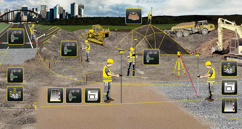 - Conçu pour les professionnels de chantier, tels que les chefs de chantier, superviseurs, contrôleurs de niveaux, conducteurs d’engin, etc., qui ont spécifiquement besoin d’exécuter efficacement des mesures sur le terrain