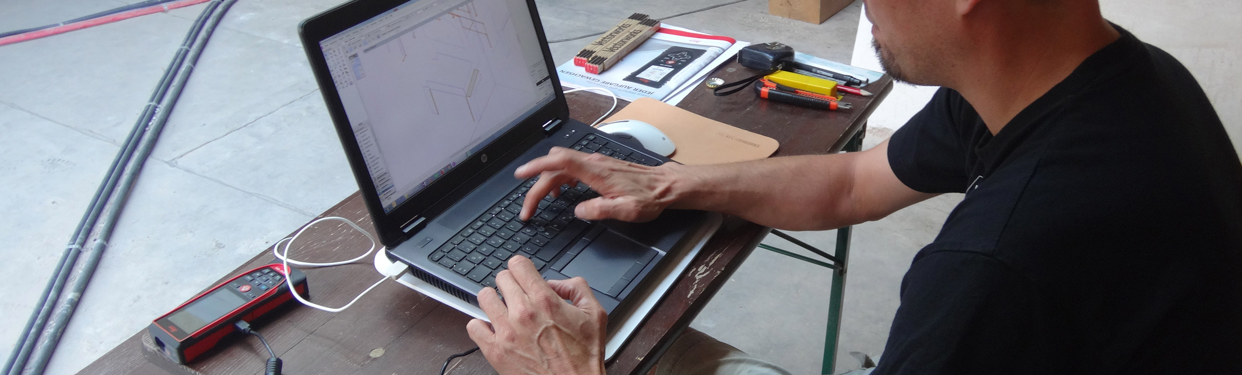 Collegando il Leica DISTO™S910 al computer e spostando il file DXF direttamente in Vectorworks, un software CAD 2D e 3D e BIM, utilizzando la funzione drag-and-drop, Flöther è stato in grado di regolare i piani di lavoro dei punti 3D importati, creare tabelle e altro ancora.