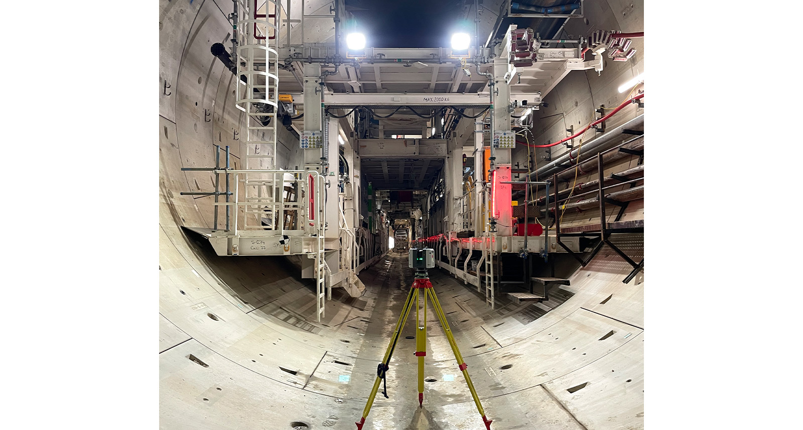 That wasn’t the only monumental surveying challenge during construction. Another was ensuring the tunnel sections were built exactly as designed. To achieve this, the SCS JV surveying team established and captured detailed as-built data throughout construction. Using Leica Geosystems technology, they delivered 3D scans of the tunnel linings, cross passages, and walkways to the engineers and designers. These scans were compared with the original design models to verify accuracy at every stage while maintaining strict safety and precision standards.