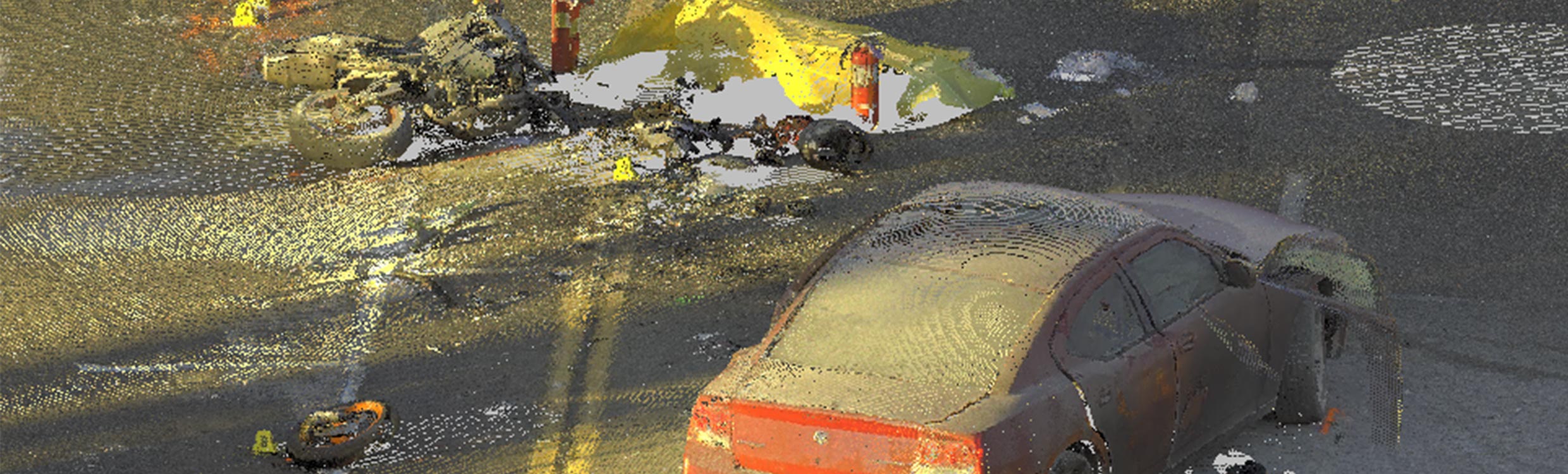 “Now we can really bring someone into the scene as we saw it that day in a way that a two-dimensional drawing could never anywhere approach,” Hadley says. “You can talk about two cars colliding at 40 miles (64 kilometres) an hour. In concept, they really don't know what it looks like when a violent collision occurs—the crushed vehicles, the debris field—it can be overwhelming.”