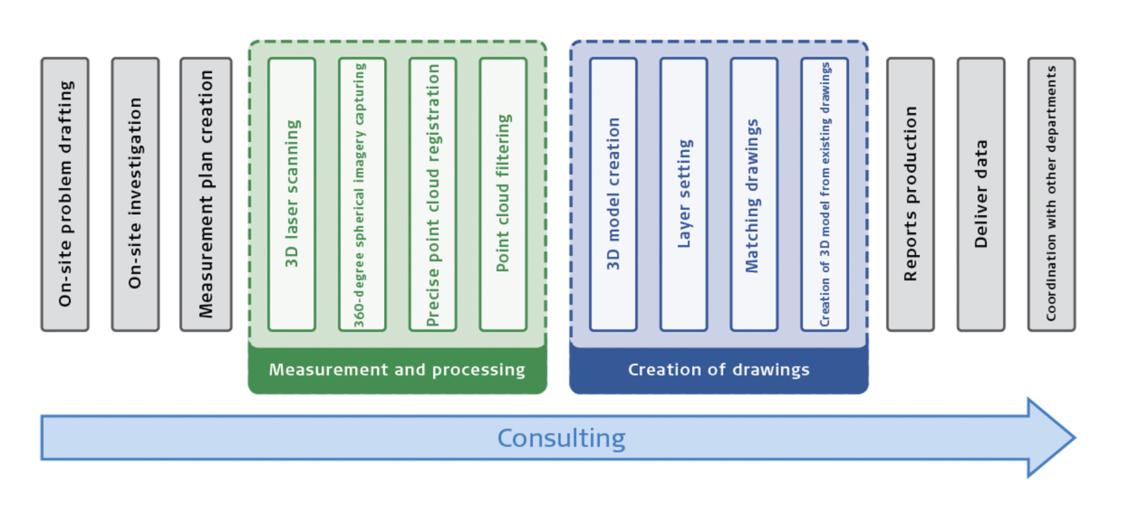 The purposes for measurements have changed from acquiring just distances between two points to creating 3D models with appropriate drawing sets that can be even applied in augmented reality and simulations. The need for accurate point cloud data will surely increase as business opportunities expand and diversify.