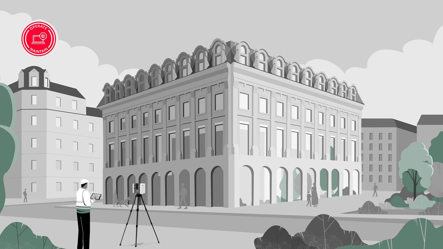 라이카의 지리 공간 및 리얼리티 캡처 기술을 통해 설계부터 개조 또는 철거에 이르는 건물의 수명 주기 동안 다양한 서비스를 제공할 수 있습니다. 라이카 측량 솔루션은 건축 공사 프로젝트의 모든 단계에서 효율성을 향상시키도록 돕습니다. 이는 이해당사자들을 지속적으로 최신 CAD 및 BIM 데이터에 연결하는 것을 포함합니다. 건축 공사의 워크플로우와 데이터 흐름을 이해한 기반 위에, 라이카 솔루션은 모든 요소를 연결하고, 위험과 낭비를 줄이며, 재작업을 방지하고 안전성을 높이도록 도와줍니다.
