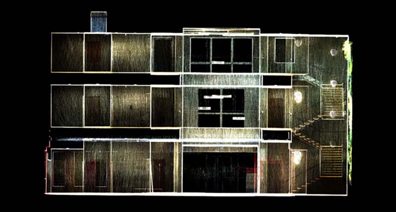 방과 출입구를 통과하면서 객체의 위 아래, 모서리 주위, 계단통로 등을 위아래로 스캔합니다. SLAM 즉, 공간 인식 기술을 사용하여 BLK2GO는 사용자가 어디에 있고 공간 어디로 이동했는지 파악합니다.