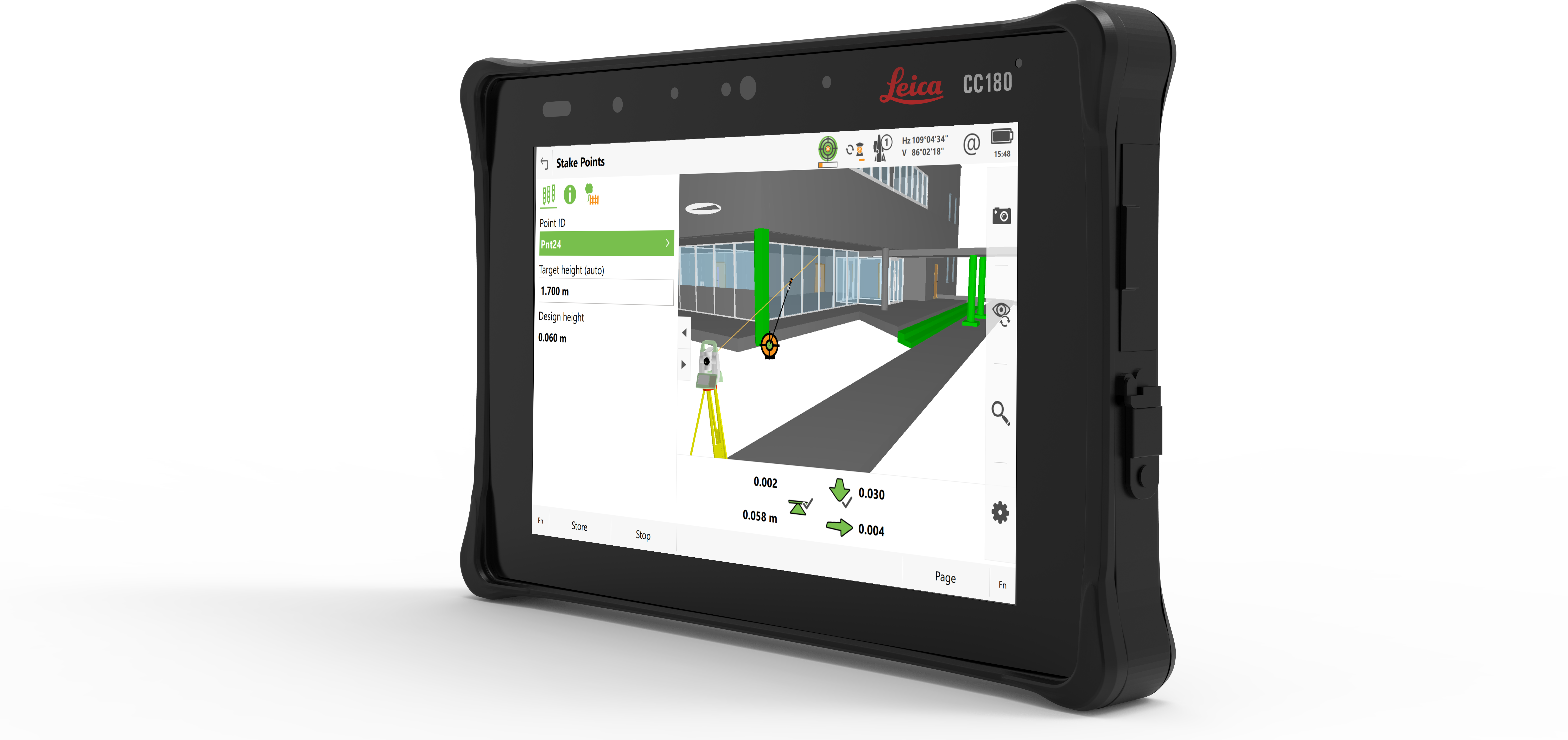 Clearly view your data in Leica Captivate on the bright, easy-to-read screen, even in challenging lighting conditions.
