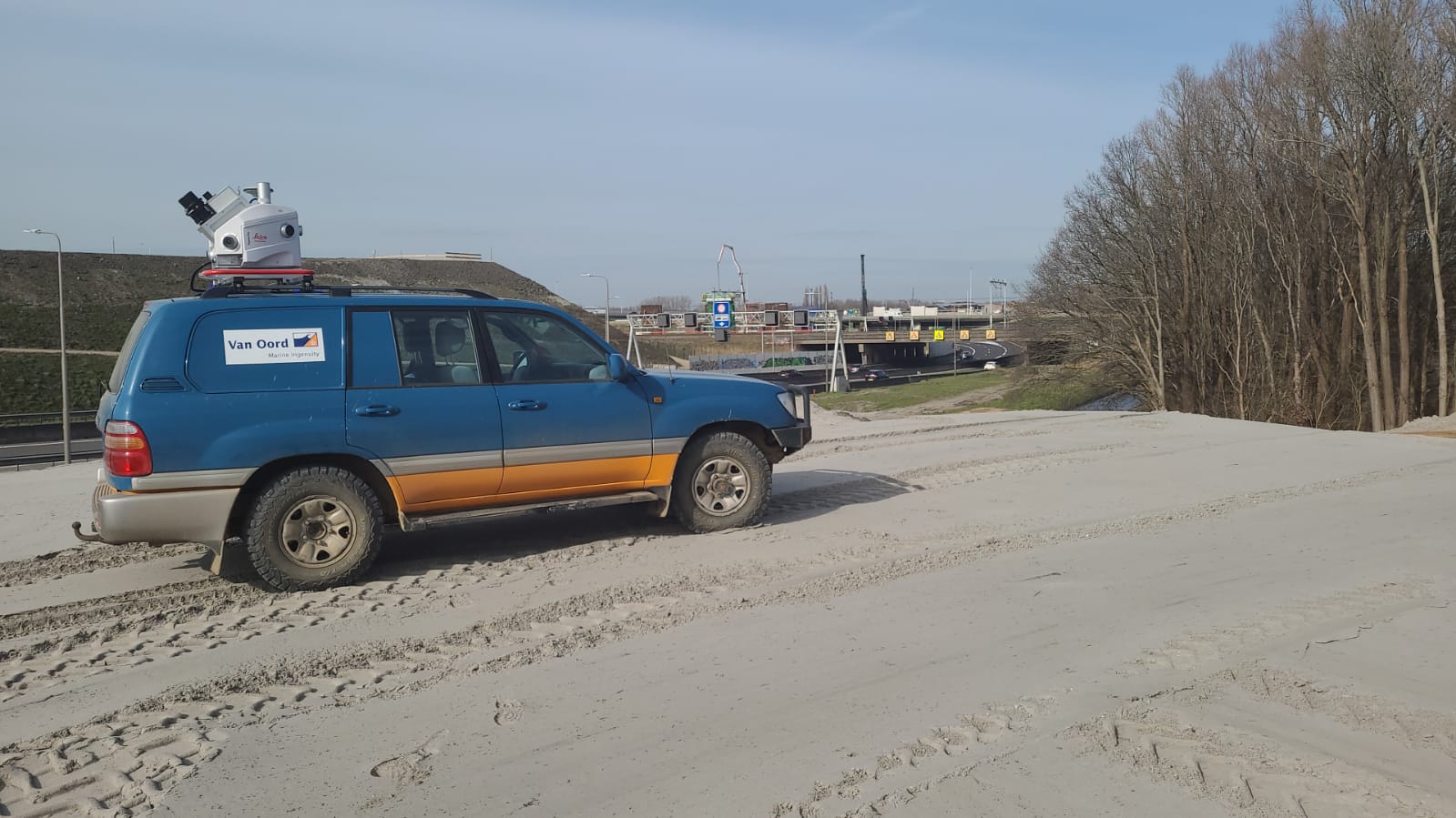 Naast maritieme projecten doet Van Oord ook steeds meer projecten op het land, waar de Leica Pegasus ook van onschatbare waarde is geworden. Onlangs werd het gebruikt in een snelwegbouwproject voor de wekelijkse voortgangscontrole van de grondverzetwerkzaamheden. In dit project is de Leica Pegasus gebruikt voor het meten van 1.100 zettingsbakens. De VOSS-software filtert de waterpasstaaf uit de puntenwolk en berekent automatisch de vervorming. Koman: "Elke twee weken hebben we een bijgewerkt beeld van de voortgang van ons project. Met de Jetstream viewer kunnen we dit aan de betrokkenen laten zien. Het is cool dat we deze gegevens online kunnen delen met iedereen die thuis werkt."
