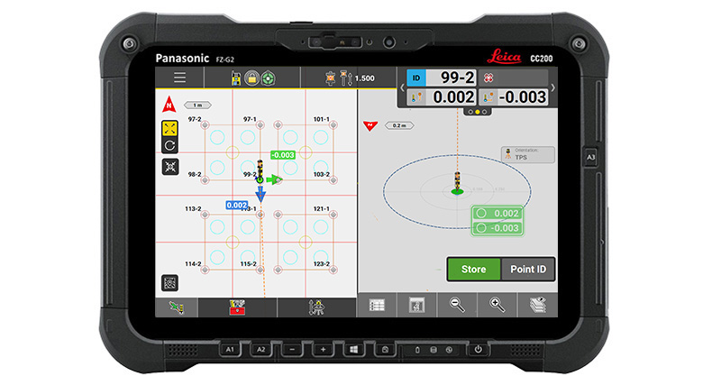 Eenvoudig en nauwkeurig punten, lijnen en bogen uitzetten vanuit 2D-, 3D- en BIM-bestandsformaten met geoptimaliseerde weergaven en kleurgecodeerde kwaliteitsindicatoren en tolerantiecontroles om elke keer een snelle en nauwkeurige maatvoering te garanderen.