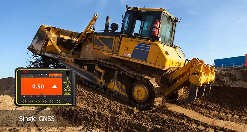 Leica MC1 is geschikt voor bulldozers met duwschild en hydraulische bladverstelling. Het introduceert 3D-machinebesturing op elk soort bulldozer en op elk werkterrein.