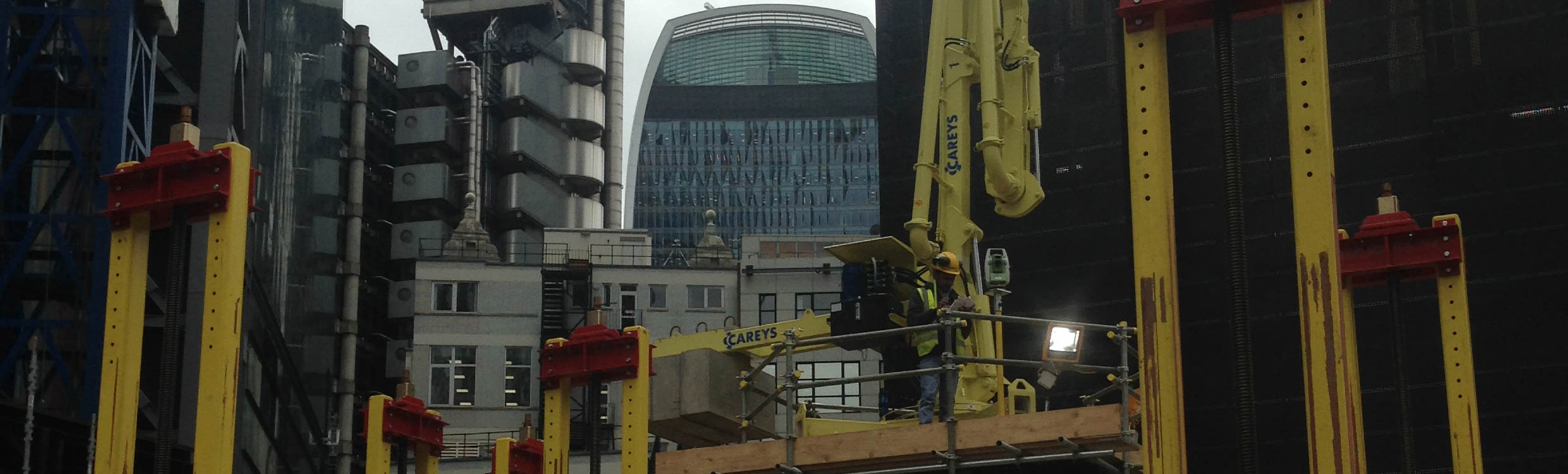 The two core walls of 22 Bishopsgate were constructed by Careys Civil Engineering in a sequence of several concrete pours using a jump form system. Jump form systems are working platforms or rigs for fixing of the formwork, steel fixing and concreting. This system is suitable for the construction of multi-storey vertical concrete elements in high-rise structures.