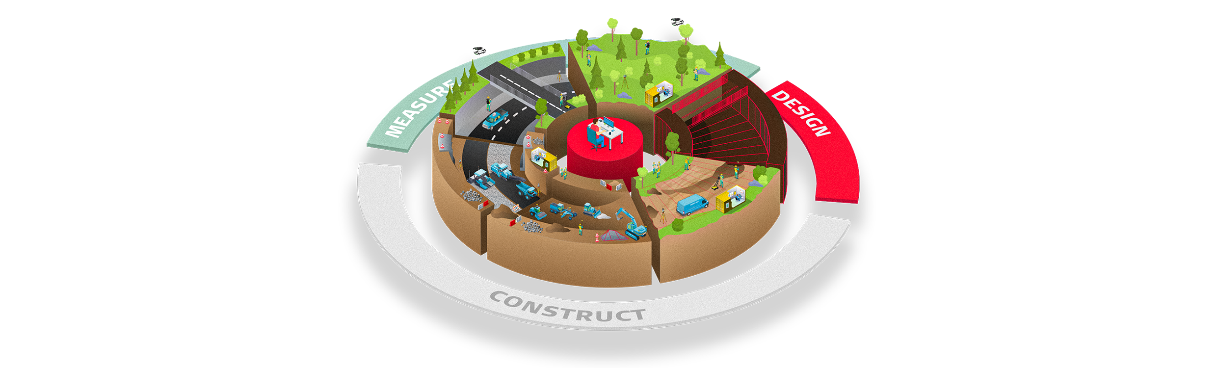 Als onderdeel van Hexagon bieden Leica Geosystems en haar zusterbedrijven technologische oplossingen op maat die afgestemd zijn op uw unieke behoeften bij wegenbouwprojecten. Onze uitgebreide softwarepakket beslaat de gehele levenscyclus van bouwprojecten en biedt voor elke fase de allernieuwste technologie.