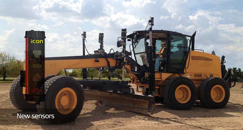 Rozwiązanie Leica iCON grade iGG2 umożliwia automatyczne sterowanie zarówno spadkiem, jak i wysokością. Odbiorniki wiązki laserowej są montowane na równiarce i używane razem z laserowym niwelatorem obrotowym. Pojedynczy niwelator laserowy wyznacza wysokość. Dodanie masztu i czujnika laserowego pozwala pracować niezależnie od kierunku nachylenia.