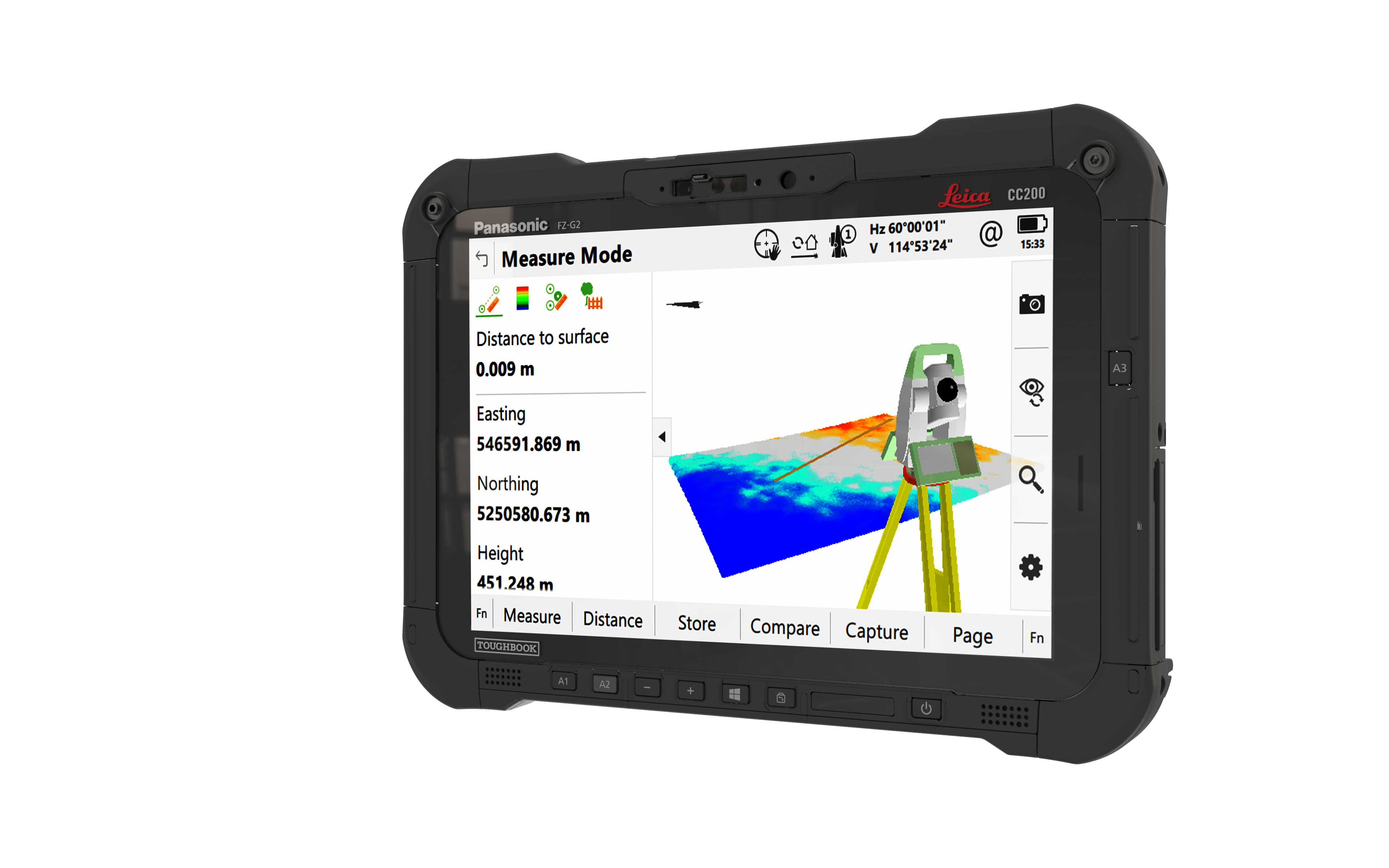 Dzięki przestronnemu 10-calowemu wyświetlaczowi, CC200 oferuje doskonałą widoczność dla wszystkich potrzeb geodezyjnych. Przestronny i dobrze widoczny ekran jest idealny do wyraźnego przeglądania danych w Leica Captivate.