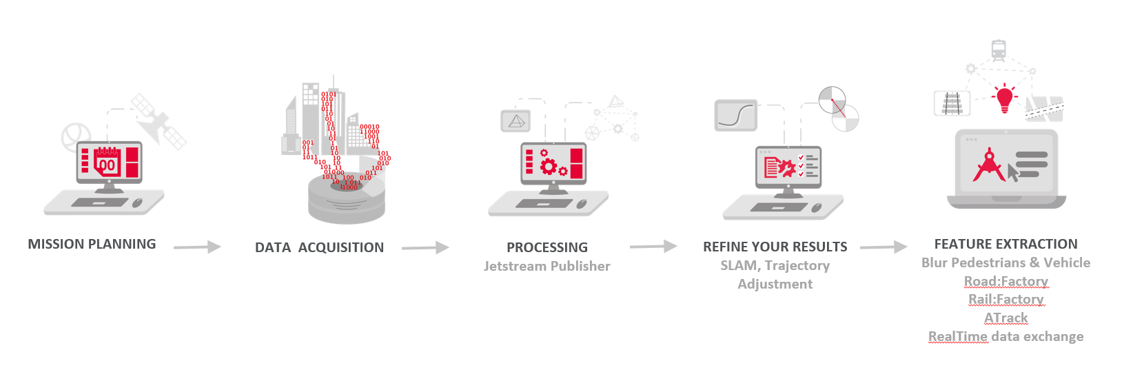 The Leica Rail:Factory provides for a complete toolset for automatic unattended batch extraction of rail-related information and objects.