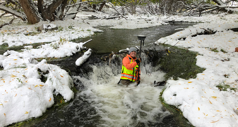 Maiden Voyage with the Leica GS18 T surveying the old Pipestone Hot Springs on a snowy day in Montana, United States, by Brent Pilon.