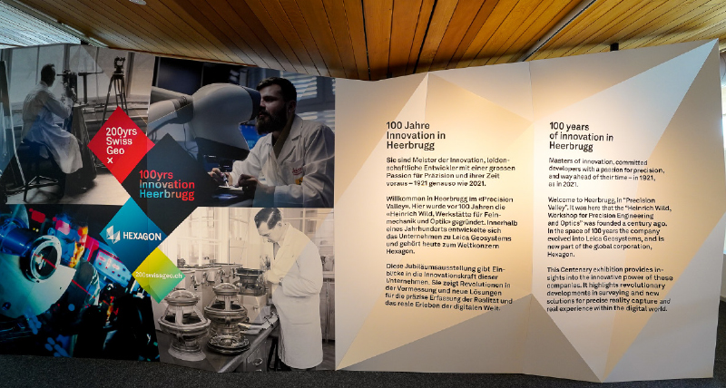 100 years of success are an occasion for celebration. On 26 April 1921, the "Heinrich Wild, Werkstätte für Feinmechanik und Optik" was founded in Heerbrugg. Out of that company grew the Leica Geosystems AG which has become an essential building block of the Hexagon technology group. We are proud to recognise these "100 years of innovation in Heerbrugg" in a series of events and publications. On 26 April 2021, the experience centre in Heerbrugg opened its doors to showcase company history through product innovations by WILD, Leica Geosystems and Hexagon.
