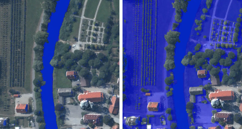 For simulating flood scenarios, the riparian areas are particularly important. These are usually vegetated, but planners can remove the trees in the model to see what lies underneath. The underwater terrain is a crucial parameter for the runoff behaviour of streams and rivers. With the help of algorithms, we can predict how much and where water will spread in case of heavy rainfall — which scientists predict will be 3%-19% more intense and up to nine times more frequent in Western Europe due to climate change.
