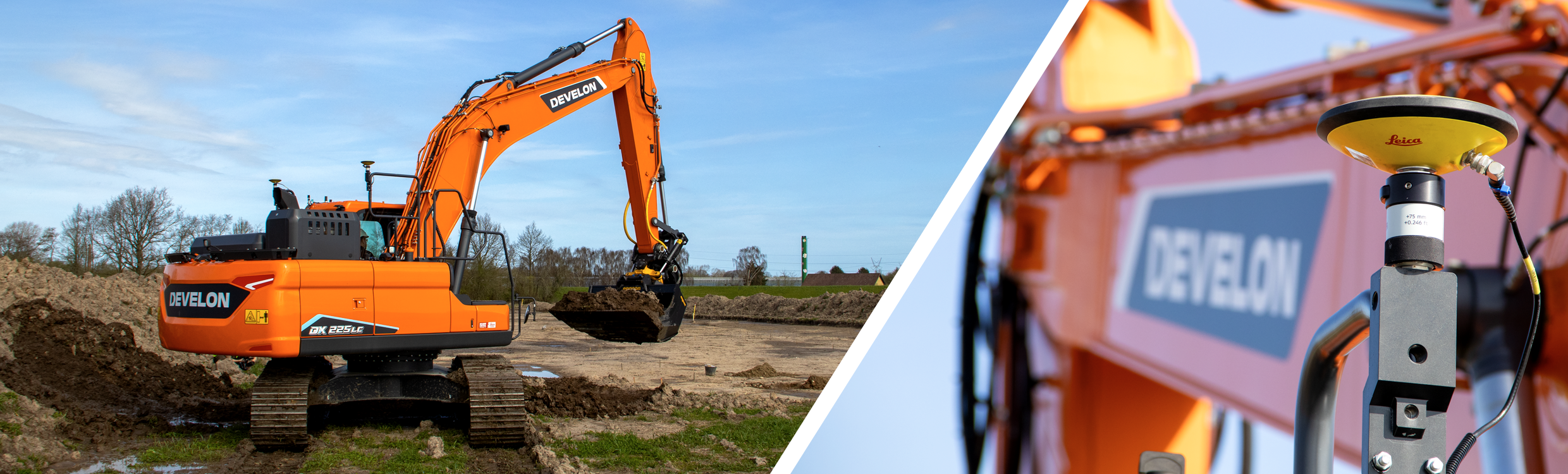 A Leica Geosystems e a Develon unem forças e know-how para oferecer soluções integradas aos seus clientes comuns! A escavadora Develon DX225LC-7X está equipada com a tecnologia Full Electric Hydraulic e um sistema de guiamento de máquinas 2D integrado como equipamento standard de fábrica, características que contribuem significativamente para um impacto ambiental positivo e eficiência no estaleiro. Nos casos em que a complexidade da tarefa e requisitos de projeto avançados exigem uma solução de controlo de máquinas 3D, a Leica Geosystems oferece o kit de montagem posterior para guiamento de máquinas 3D Leica MC1. Este kit foi concebido para funcionar na perfeição com os sensores e calibrações 2D da Develon, proporcionando uma atualização rápida e cómoda do sistema.