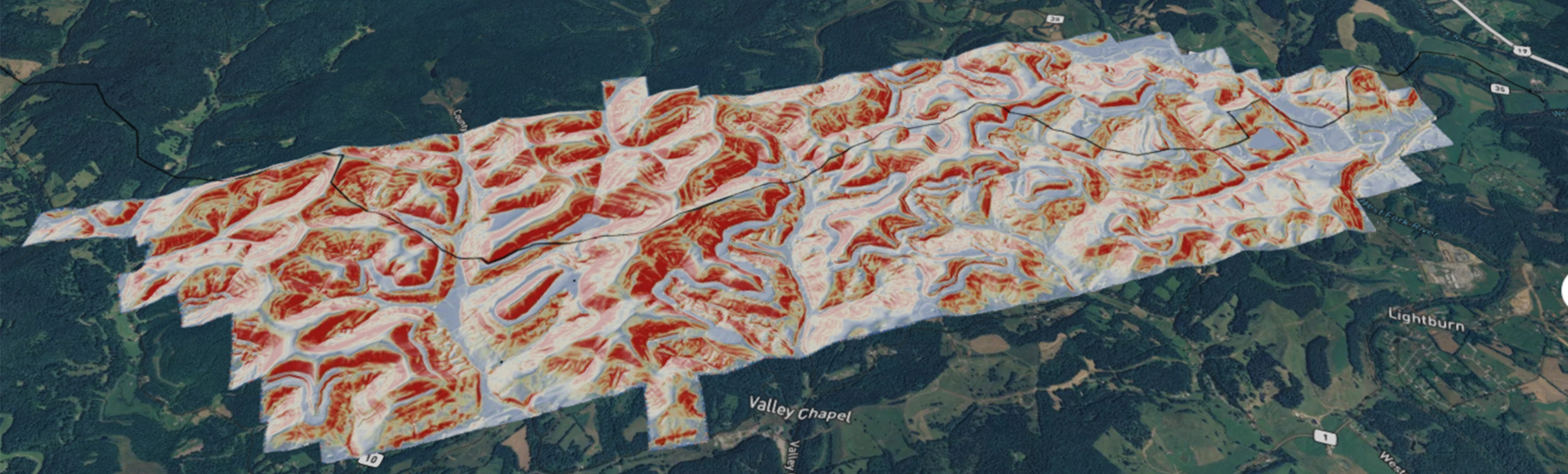 One flagship product for SolSpec is Right-of-Way (ROW) Integrity Management. Pipeline operators frequently deal with environmental conditions like landslides and erosion that threaten to rupture pipes and interrupt service. If there is a thick tree canopy obscuring the slide activity, it is difficult to identify problems. The TerrainMapper effectively penetrates tree canopies to collect high density point clouds that contain a great level of detail. After processing data in the cloud, machine-learning algorithms are used to identify hazards through the canopy, alerting customers more quickly to potential issues.